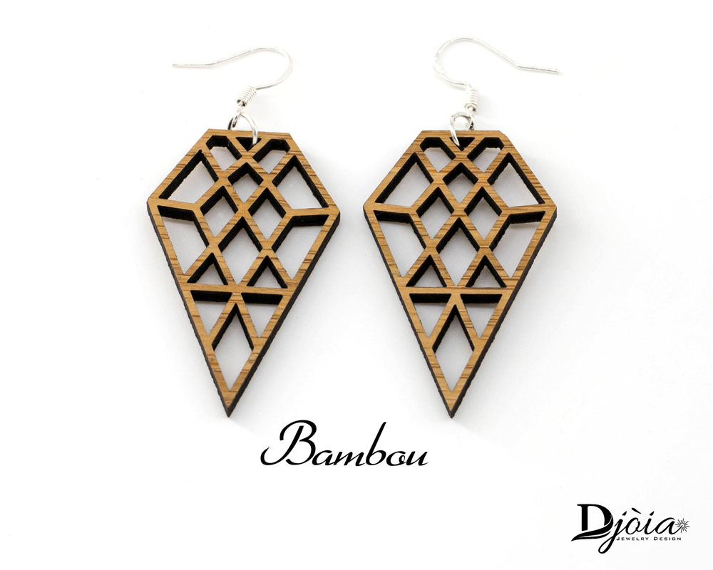 Boucles d’oreilles en bois, Diamant