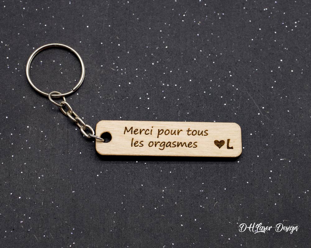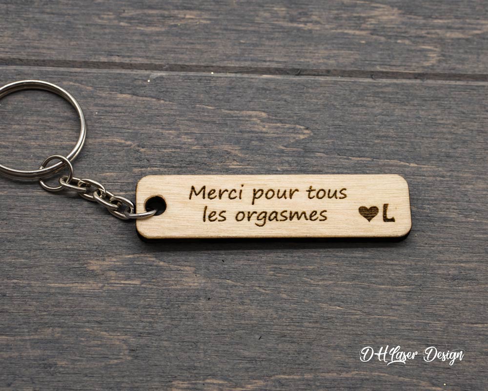 1 avis pour Porte clé personnalisé bois « merci pour tout les orgasmes » avec initiale
