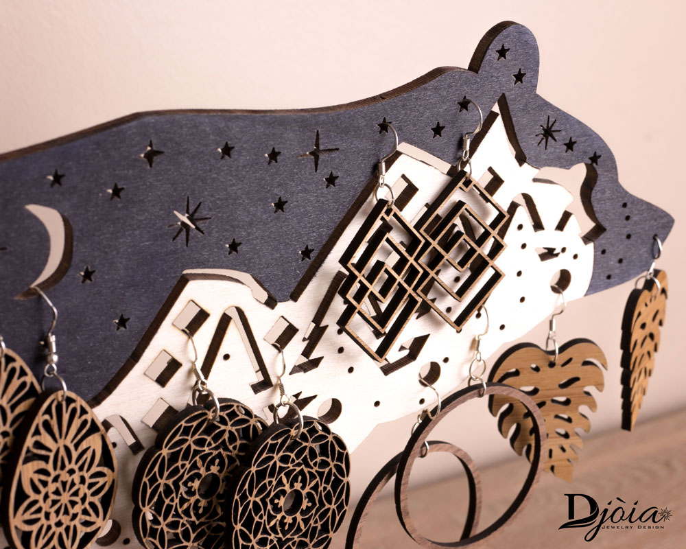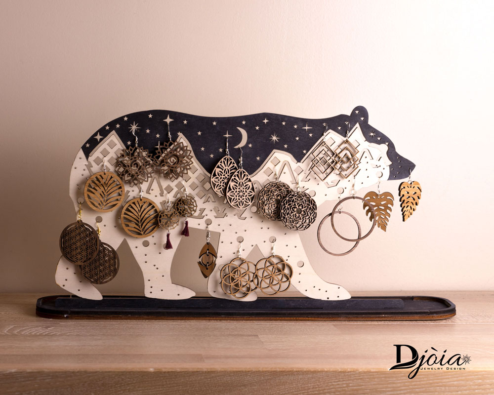 Présentoir à boucles d’oreilles ours et paysage de montagne