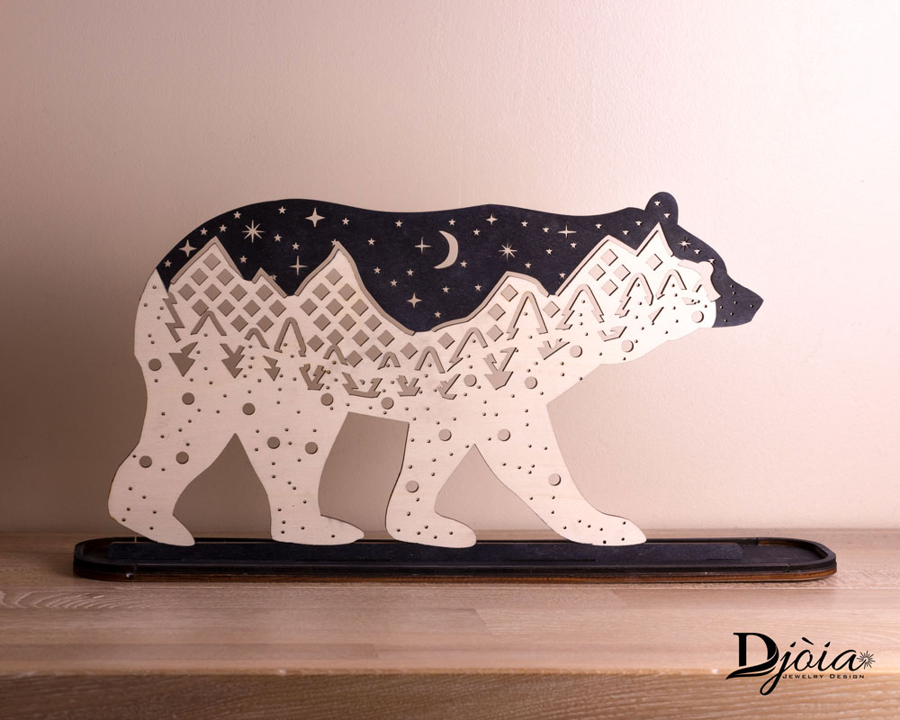 Ce présentoir à bijoux est inspiré des paysages de montagne non loin de chez moi dans lesquels l’ours peine à retrouver sa place.